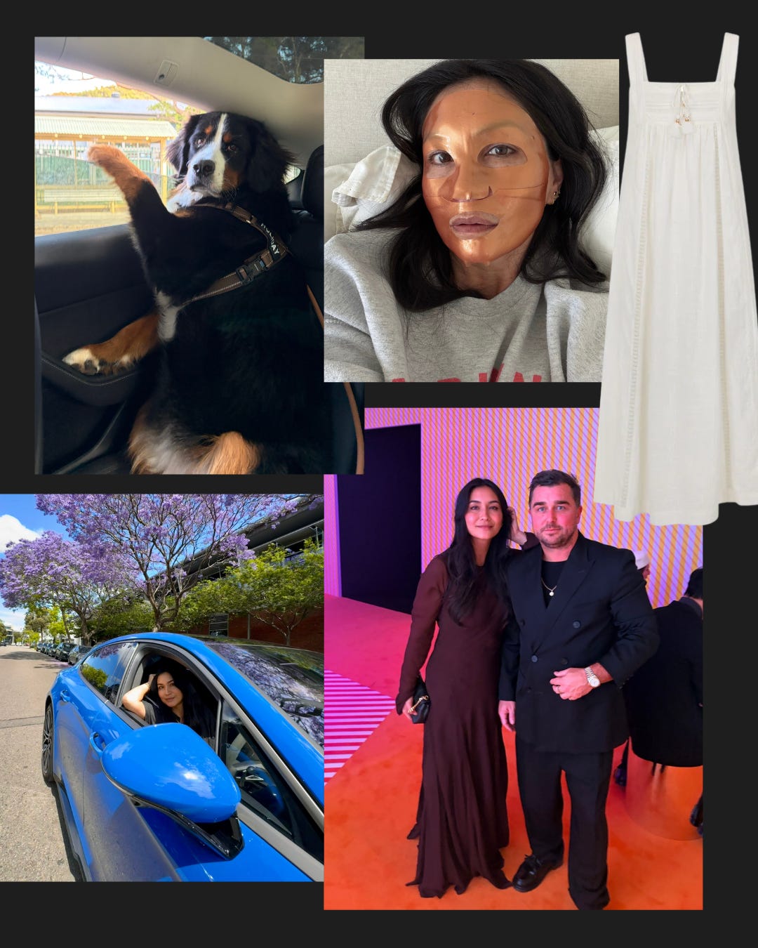 My world: I went to a beautiful party thrown by Hermes that felt like a school reunion for everyone I’ve ever known and worked with. It was so fun. I stayed until the middle of the night (10pm on the dot). It’s nice to be reminded of how much you actually like people! * We’re prepping to move house next week, which for me involves putting three things in a box, then searching Facebook Marketplace for new house treasures for three hours, then putting on an Augustinus Bader Hydrogel Mask while I call my mum to tell her hard it is, repeat. * I drove a Porsche Panamera for the week. It’s very powerful, very blue, and looked gorgeously spring-like under Sydney’s Jacarandas. * It was hot and I non-stop wore a breezy new ‘house dress’ (my words, not theirs) kindly sent to me from Spell. It’s a fun little tradwife cosplay for someone with no tradwife leanings at all, which is the only acceptable time to dress like one. * I spent some time at the newly designed Apple store in Chatswood Chase. For the first time they have a pick up bar, so you can order online and pick it up whenever you want. (Did you know Apple offer money off your old products when you trade them in for something new? I just learned this and I feel like I’ve been walking away from free money this whole time.) * Halloween is over which means it’s Christmas. The carols are on and if anyone can tell me what you do about the combination of a real tree and a 38kg rambunctious puppy, any advice is welcome.